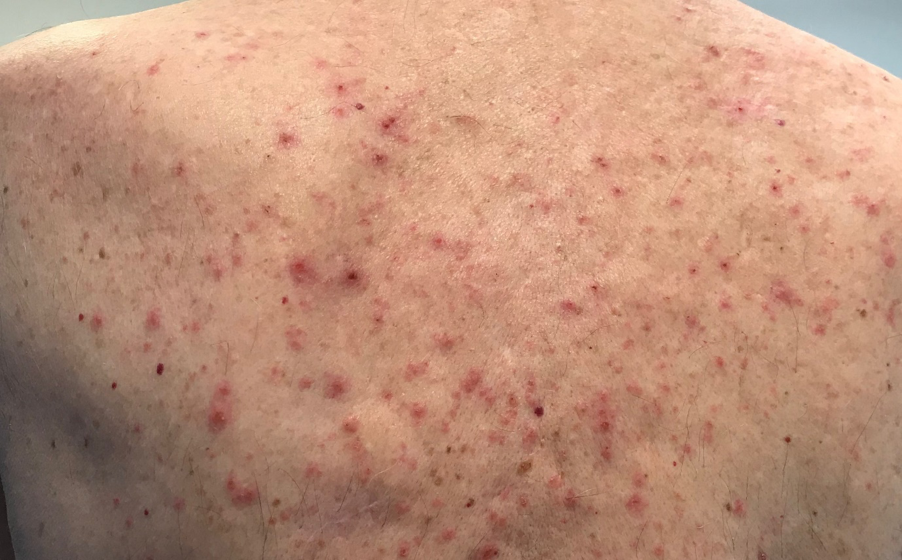 Erythemato-papular or erythematous-vesicular rash, sometimes known as “prickly heat” or a chickenpox-like rash, is the most frequently reported rash and is characterized by tiny, irritating red bumps. It can happen everywhere on the body, although it commonly begins at the backs of the hands and feet, along with the elbows or knees. It seldom affects the face and occasionally becomes crusty, weepy, or forms blisters.