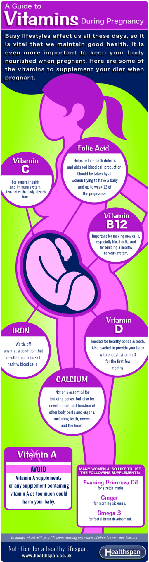 We’ll go through different vitamins with the best nutrition for the baby’s needs. Still, pregnant or trying-to-conceive women should talk to their doctors about food, nutrition, and supplements to better understand their bodies’ needs.