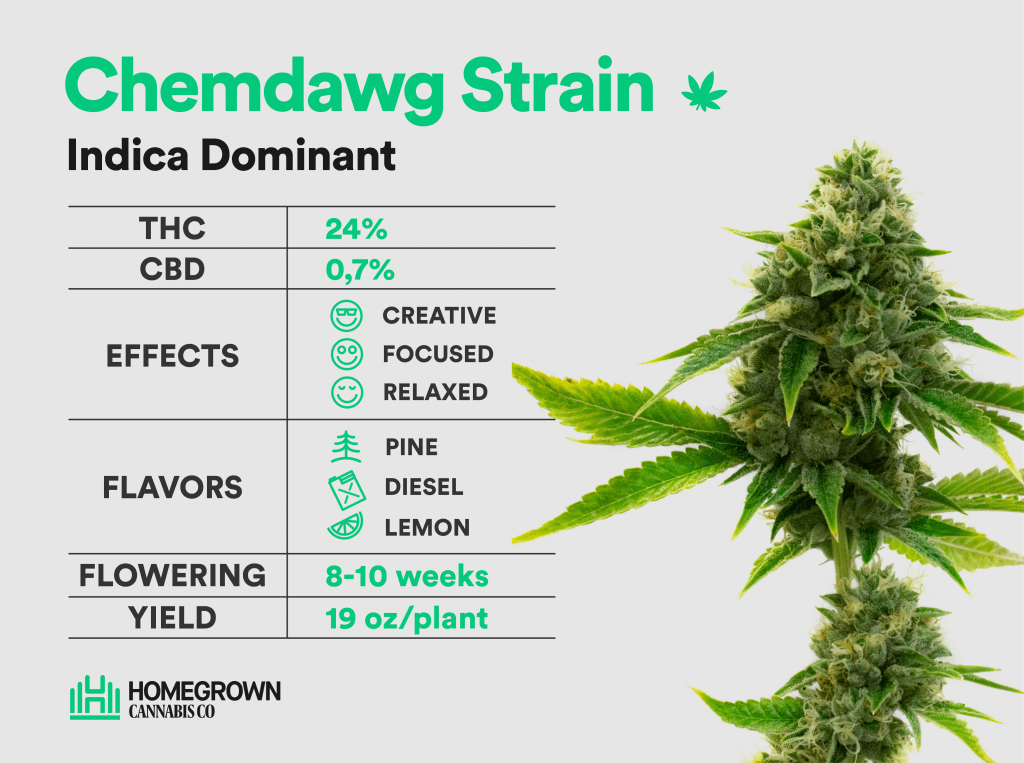 Chemdawg’s legendary fame is in part due to its effects. You can complete your to-do list quickly and with plenty of time to spare, thanks to a cerebral impact that may linger for hours! Chemdawg is regarded as the best socializing strain and has frequently catalyzed numerous ground-breaking discussions.